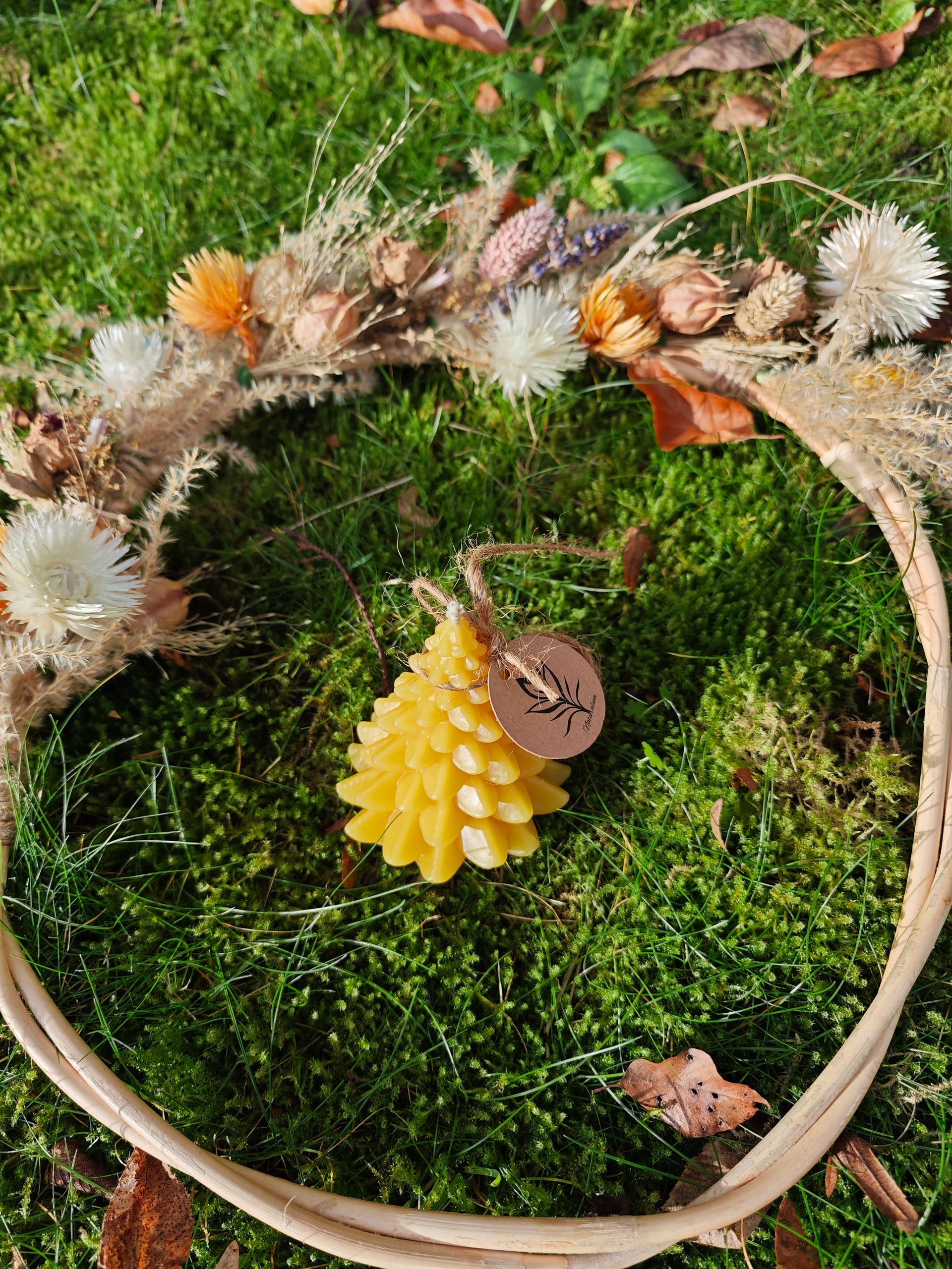 Dit kerstboomkaarsje (ca. 7 cm hoog) is met liefde met de hand gemaakt van 100% bijenwas.